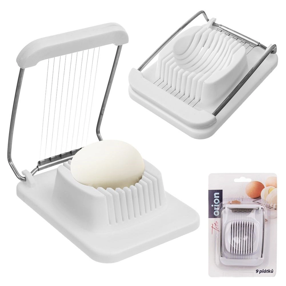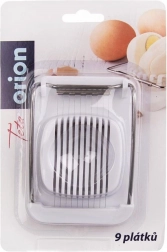 Praktikus tojásszeletelő masszív műanyag alappal és rozsdamentes acél huzalokkal, amelyek gyors, egyenletes és pontos szeletelést biztosítanak egy mozdulattal akár 10 szeletre. Alkalmas gombák, gyümölcsök és zöldségek szeletelésére is, könnyen tisztítható és mosogatógépben mosható. ORION – bevált minőség a konyhában.