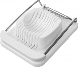 Az ergonomikus fogantyú és a párhuzamos rozsdamentes huzalok 10 egyforma szeletet készítenek a sárgája és a fehérje morzsolódása nélkül.