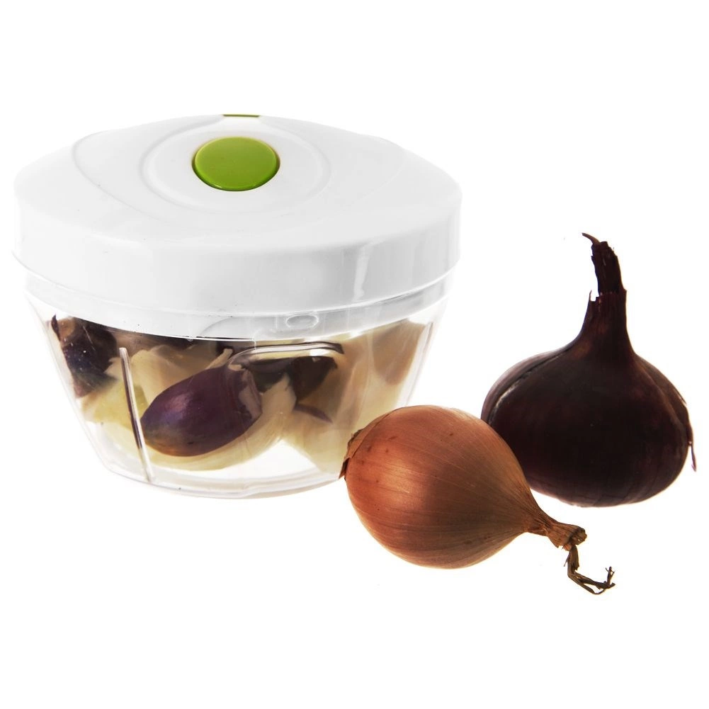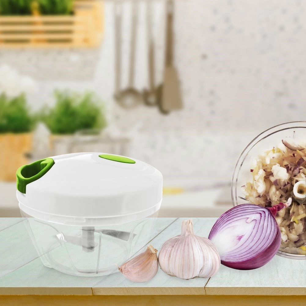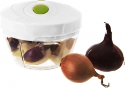 Tartós kialakítás minőségi műanyagból, dupla rozsdamentes acél pengékkel a gyors és egyenletes eredményekért, valamint csúszásgátló peremmel az alján a biztos és kényelmes használathoz. Ideális zöldségekhez, hagymához, gyümölcshöz, fűszernövényekhez, csokoládéhoz és diófélékhez – nélkülözhetetlen segítő minden konyhában.
