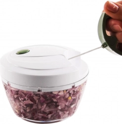 Húzza meg az ergonomikus fogantyút, és hagyja, hogy a pengék dolgozzanak. Az aprítás sebességét és finomságát a húzások száma szabályozza – a durvától a finomra vágottig.