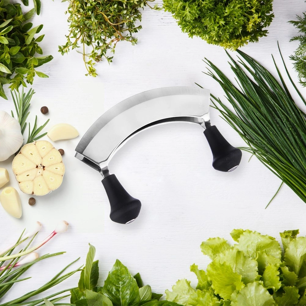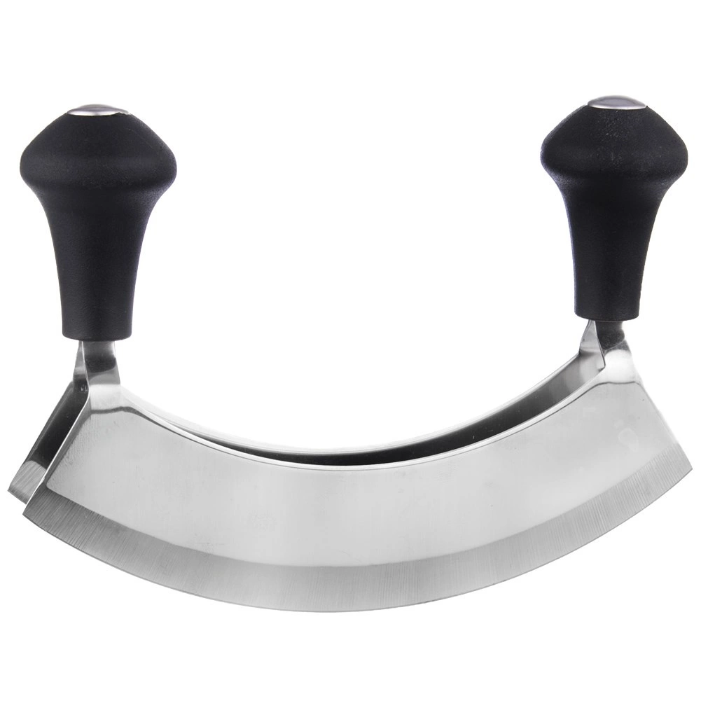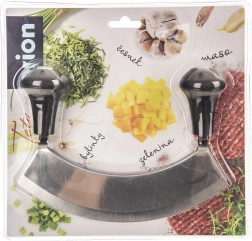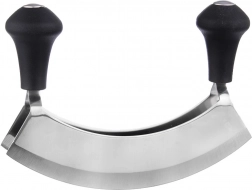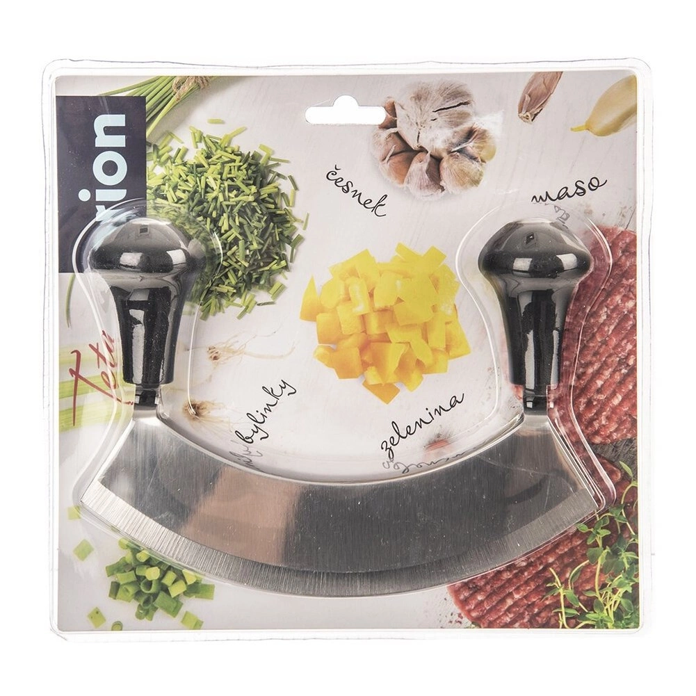Praktikus fűszervágó kettős félköríves éllel és 17 cm teljes hosszal, amely gyors és pontos aprítást biztosít fűszernövényekhez, zöldségekhez és diófélékhez. A masszív rozsdamentes acél és a kényelmes, csúszásmentes markolatok révén jól kézre áll, ideális otthoni konyhákba és vendéglátásba egyaránt.