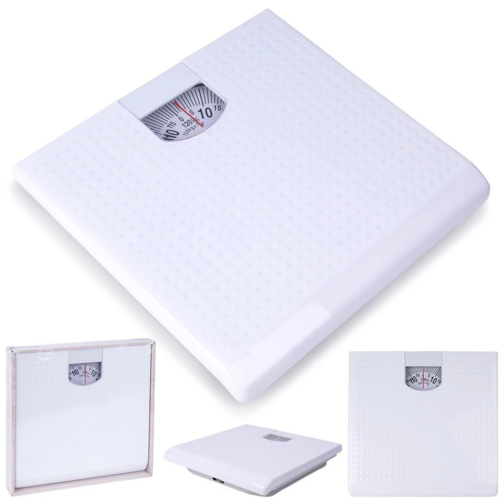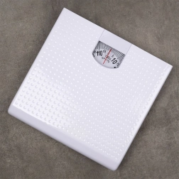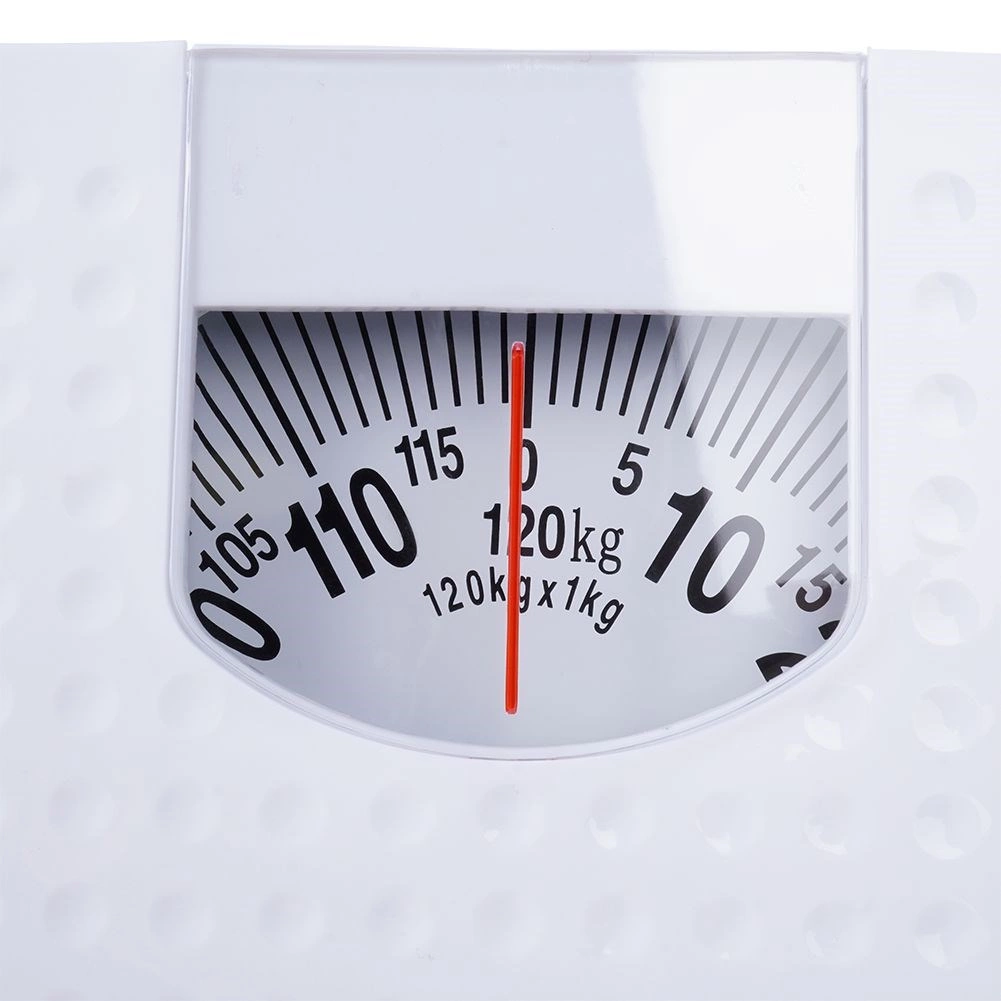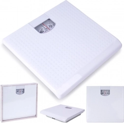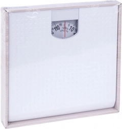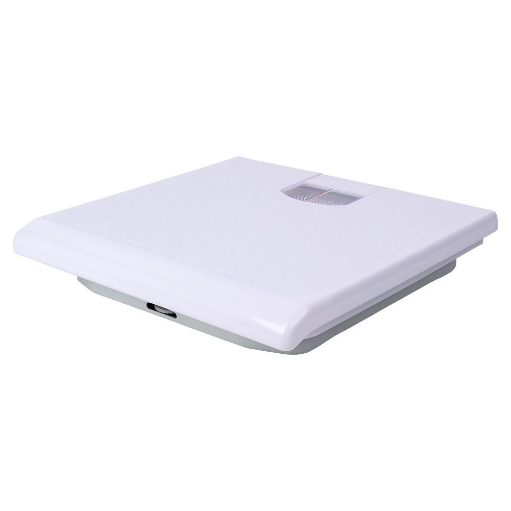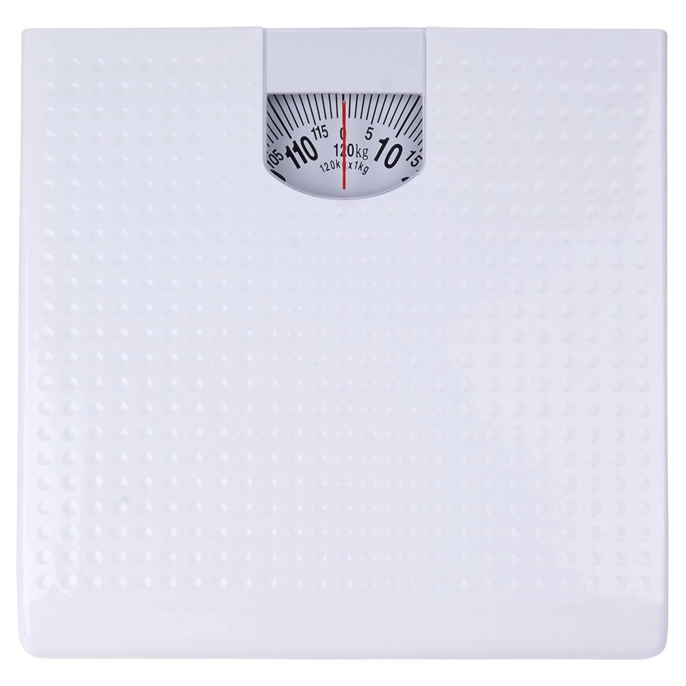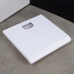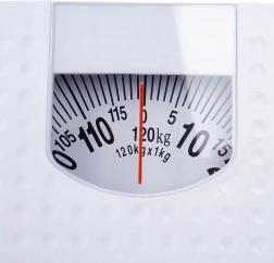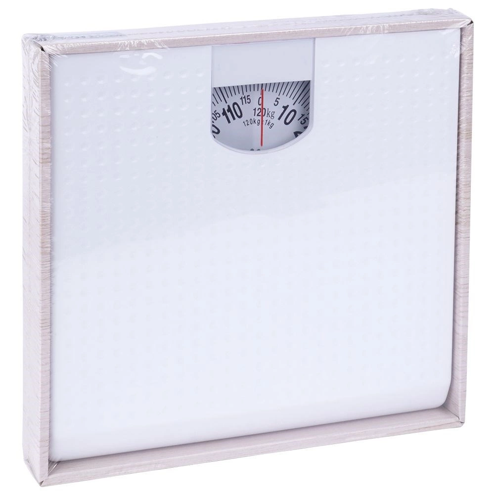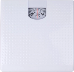 Mechanikus fürdőszobai mérleg tartós műanyag házzal és alacsony profillal, ideális otthoni használatra. Az áttekinthető skála kilogrammban 120 kg-ig lehetővé teszi a testsúly gyors megállapítását várakozás és elemek nélkül. A letisztult fehér dizájn illik modern és klasszikus fürdőszobákba is.
