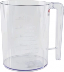 Az átlátszó kancsó jól olvasható skálával 100–1000 ml között, valamint 1/4–1 l jelöléssel megkönnyíti az alapanyagok mennyiségének és a tészta állagának kontrollját.