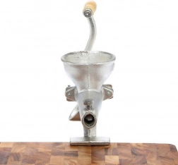 Az öntöttvas kézi prés ideális paradicsom, szőlő, ribizli vagy málna feldolgozásához. A karral működő mechanikus áttétel lehetővé teszi a házi pürék és levek elkészítését nagyobb erőfeszítés nélkül, miközben megőrzi az ízeket és a tápanyagokat. A stabil csavaros rögzítés csúszásgátló betéttel megvédi a munkalapot, és szilárdan a helyén tartja a prést.