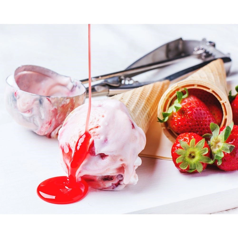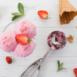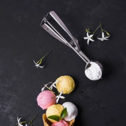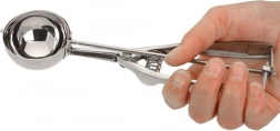 Az 5,5 cm átmérőjű fej és a kilökő mechanizmus tökéletesen egyforma adagokat formáz fagylaltból és püréből is.