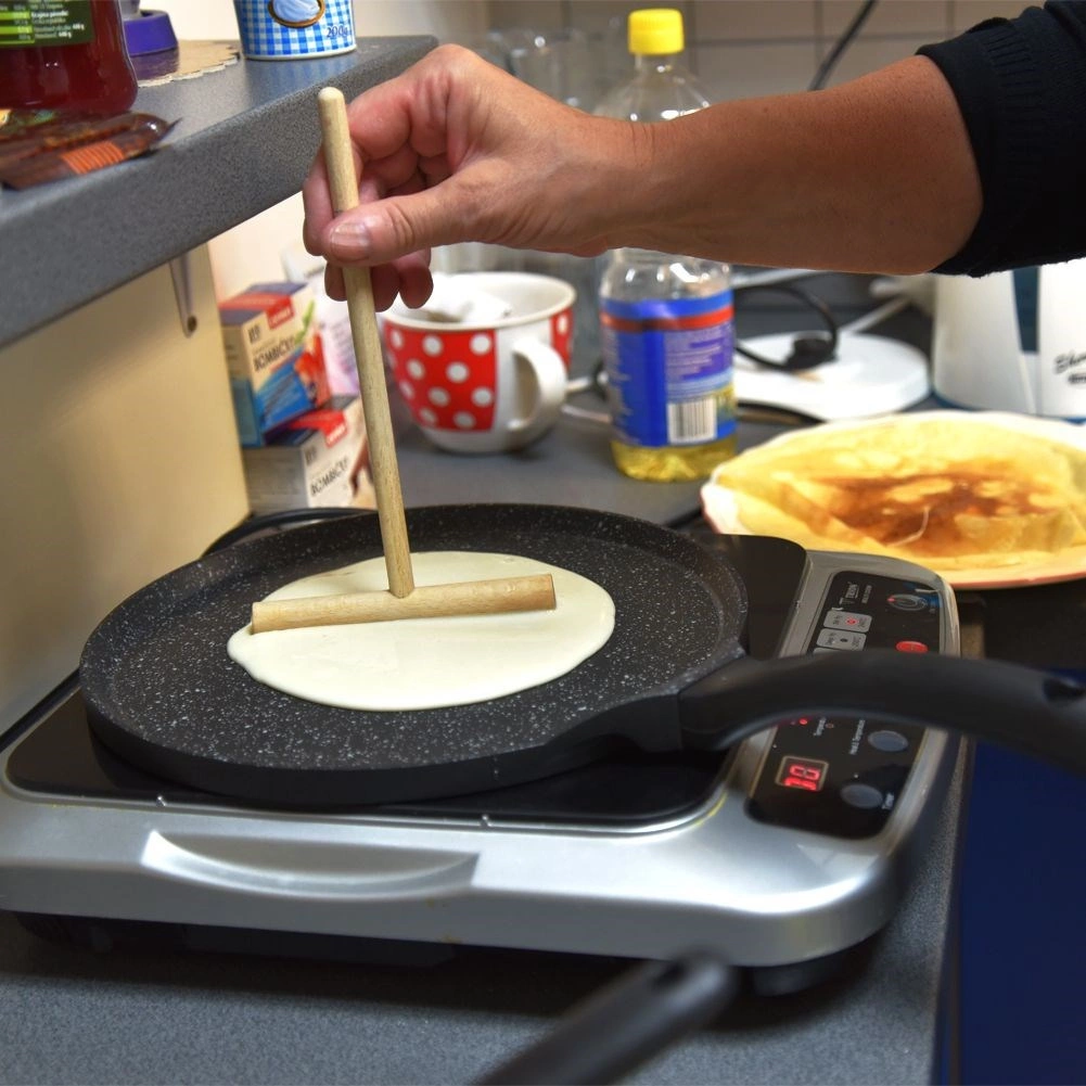 A fából készült palacsintasimító univerzális segítőtárs minden konyhában. Lehetővé teszi a tészta egyenletes eloszlatását, így vékony, egyenletes és esztétikus palacsintákat készíthet fáradság nélkül. A természetes bükkfa révén könnyű, tartós és környezetbarát, emellett nem karcolja az edényeket.