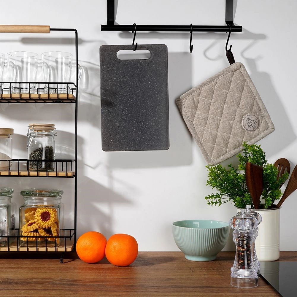 Kompakt és tartós, minőségi műanyagból készült vágódeszka szürke, gránitmintás felülettel. Ideális a mindennapi ételkészítéshez, minden késhez használható, beleértve a kerámiakéseket is. Az integrált nyílásnak köszönhetően könnyen hordozható és felakasztható, egyszerűen tisztán tartható, mosogatógépben mosható. Nem veszi át a szagokat, nem szívja magába a folyadékokat, és élelmiszerbiztonságos. Az ORION márka bevált minősége.