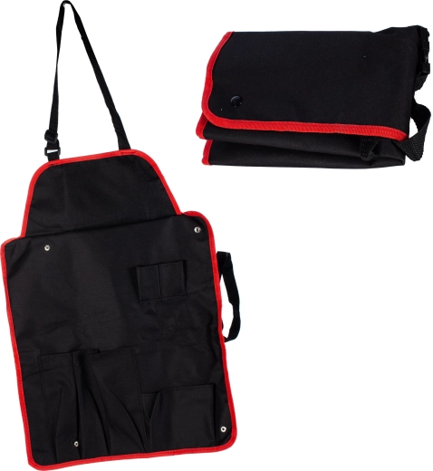 Praktikus, univerzális méretű grillező kötény, amely megóvja a ruházatot és kéznél tartja az eszközöket. Kínál tágas zsebeket a kiegészítőknek, állítható nyak- és derékpántot, valamint kényelmes akasztóhurkokat a felakasztáshoz és tároláshoz. Ideális otthoni grillezéshez és kerti partikhoz.
