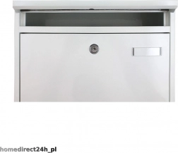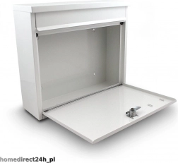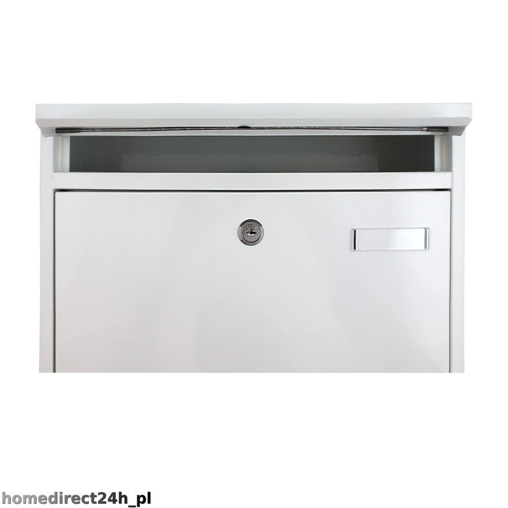 A modern, fehér, lakkozott fémből készült postaláda ideális kültéri felszereléshez kerítésre vagy falra. Biztosítja a levelek biztonságos tárolását, időjárásállóságot és elegáns, időtálló dizájnt. A bedobónyílást eső- és szennyeződésvédelemmel ellátott fedél óvja, a postaládán névtartó ablak található, a zár kulccsal működik (2 kulcs a csomagban).