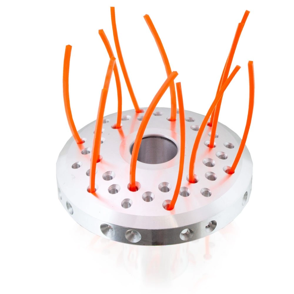 A sok rögzítő furat lehetővé teszi több nylon zsinór egyidejű használatát a gyorsabb és hatékonyabb munkavégzéshez nagyobb felületeken és sarkokban is.