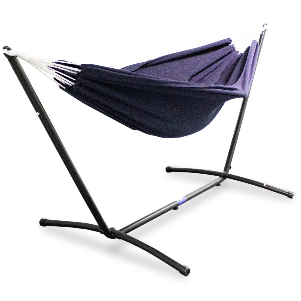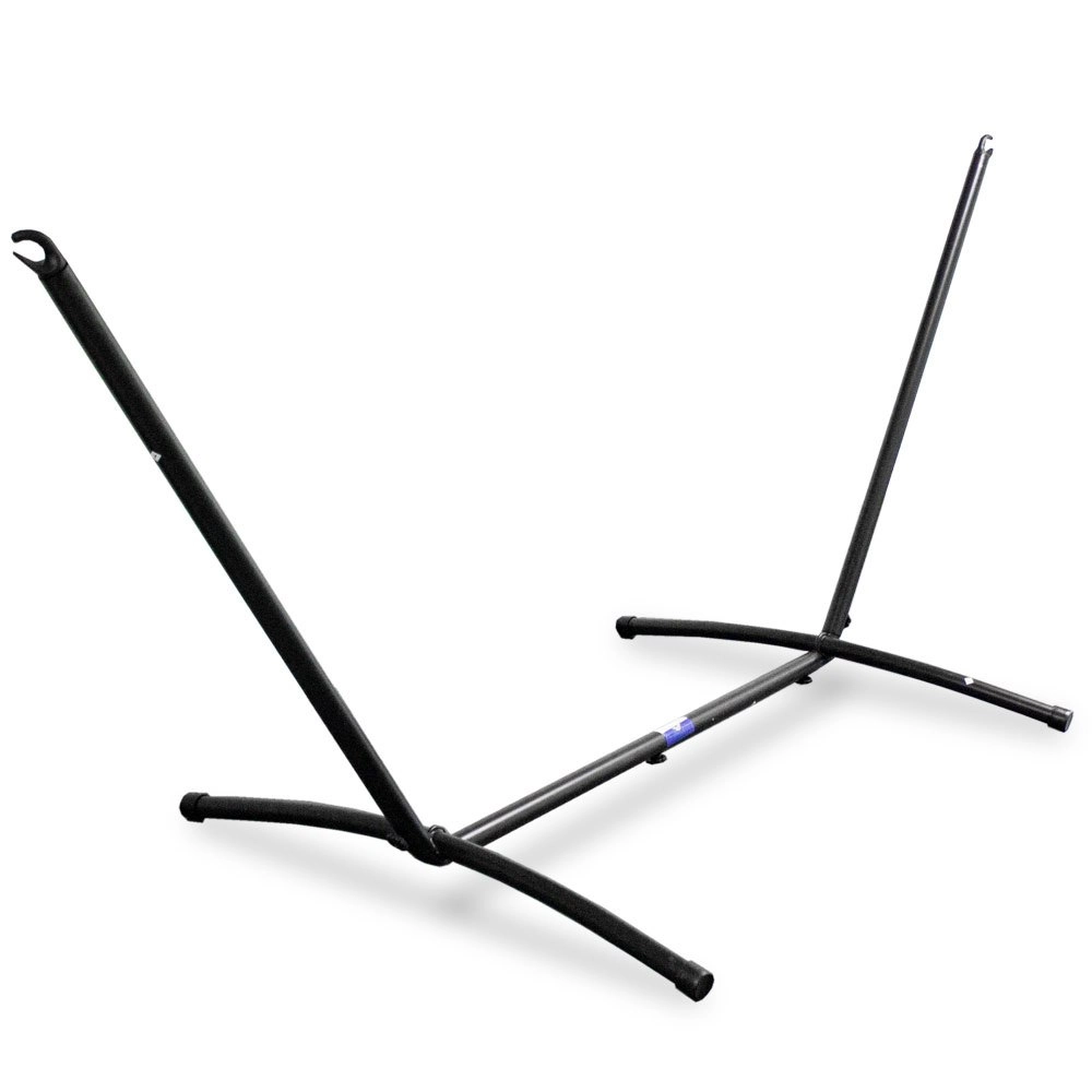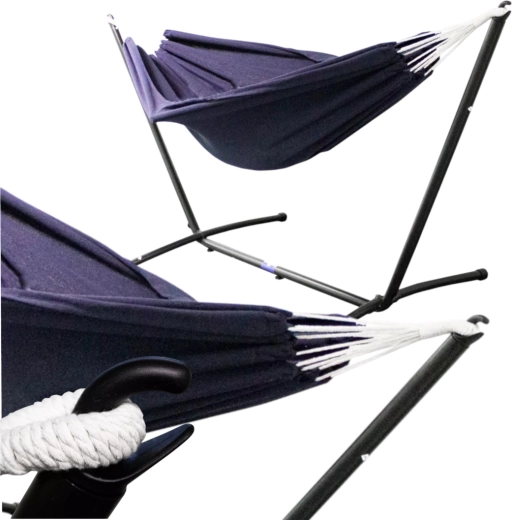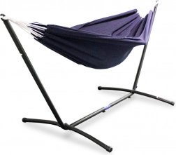 Alakítsa ki saját nyugalom-szigetét a tartós állványon elhelyezett kétszemélyes függőággyal. A porszórt fém váz stabilitást és biztonságot nyújt, míg a textil fekvőfelület alkalmazkodik a testéhez a kényelmes pihenésért egyedül vagy kettesben.
