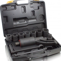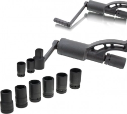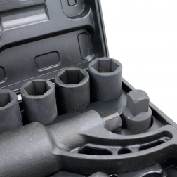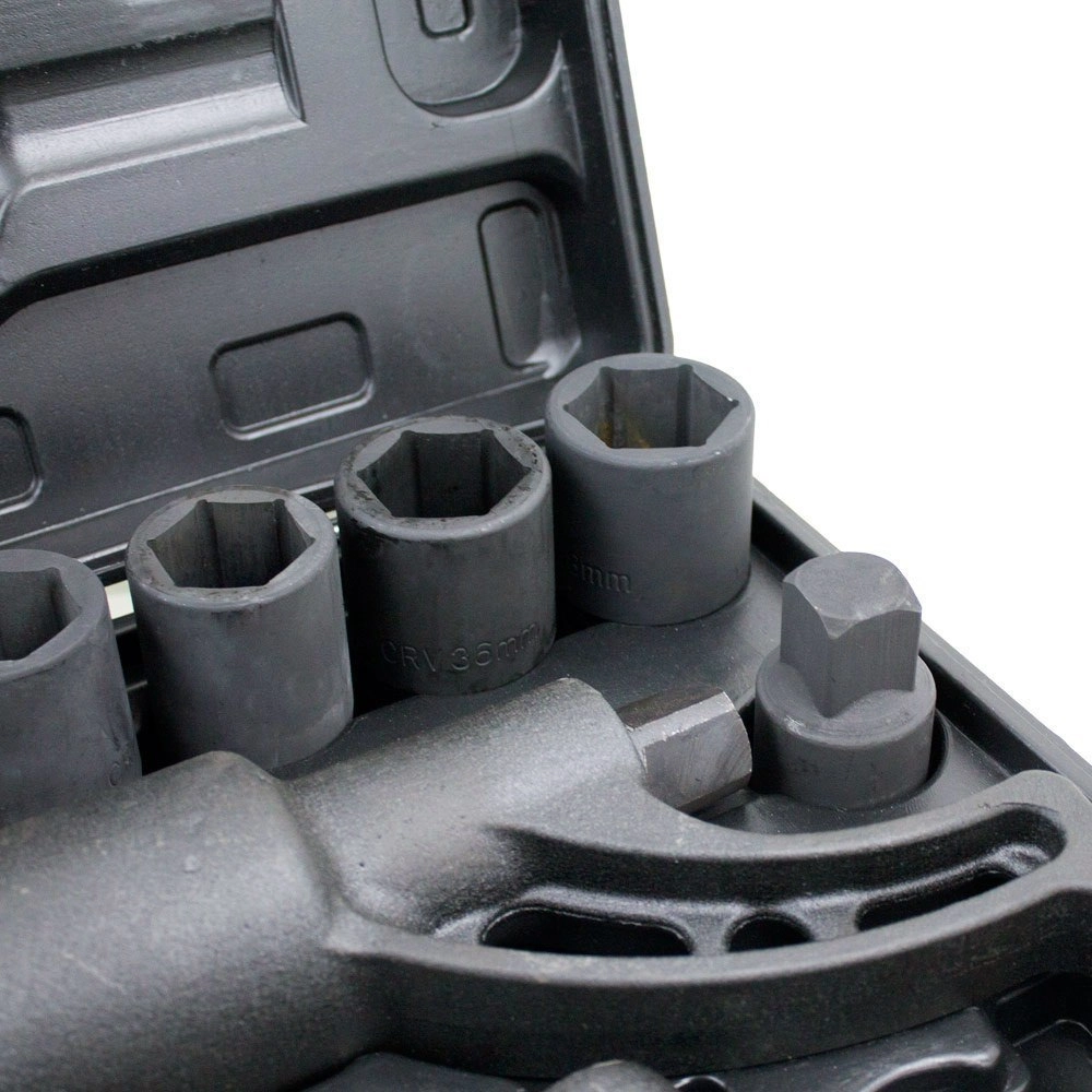 - Komplett készlet dugókulcsokkal: 24, 27, 30, 32, 33, 36, 38 mm, tartozékokkal együtt.