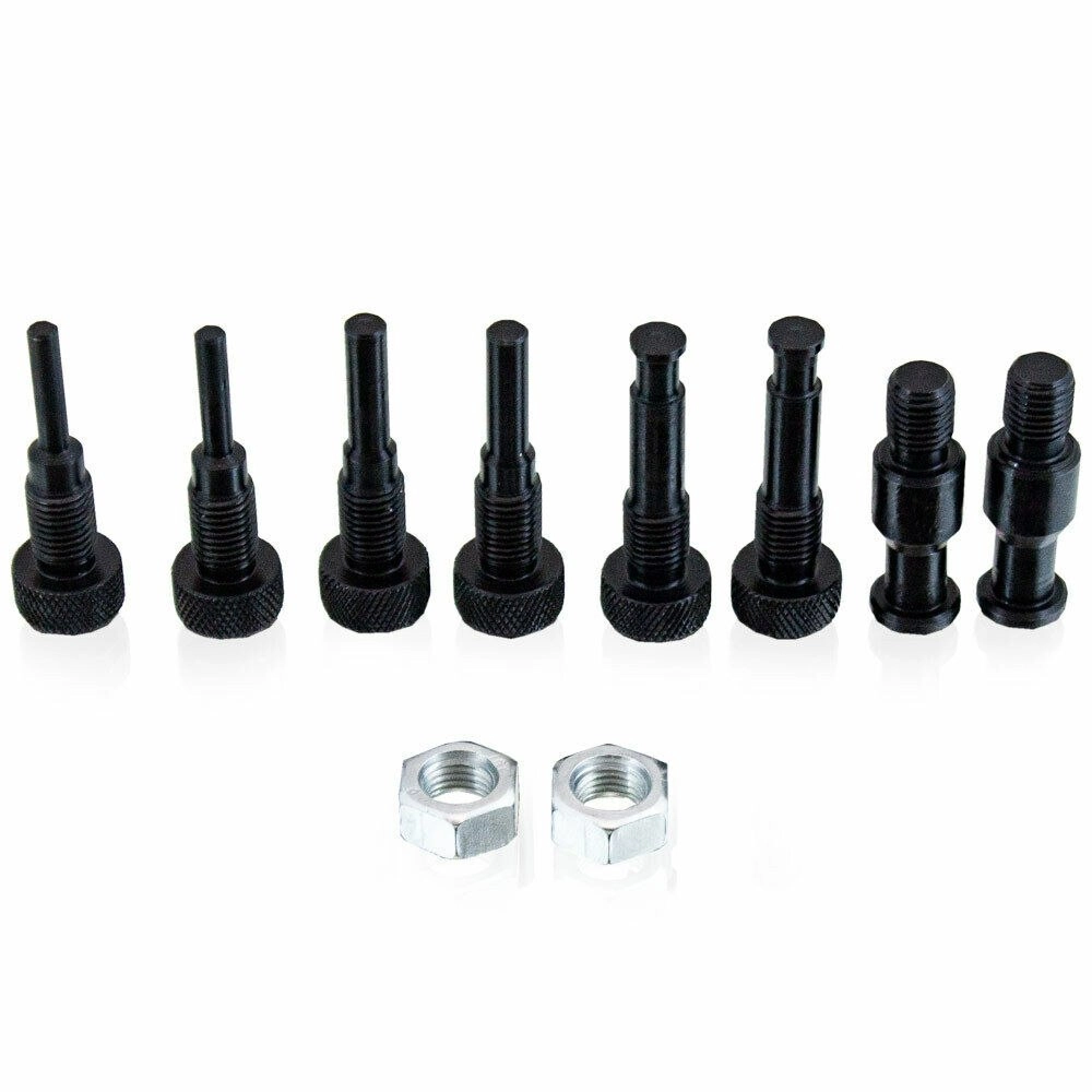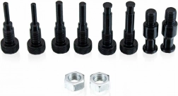 - szíjtárcsa-kulcs, 8× csap (a megadott méretekben), 2× rögzítő anya, műanyag koffer