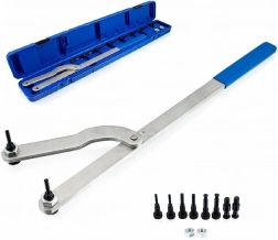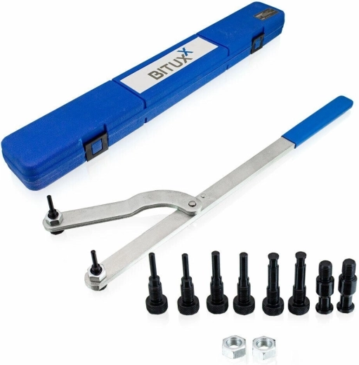 Megbízható eszközt keres vezérlés-szervizhez és szíjtárcsákhoz? Ez a BITUXX univerzális kulcs precíz vezérműtengely-szíjtárcsa, befecskendező- és olajszivattyúk blokkolására készült. Az állítható befogás és a többféle csapméret révén a legtöbb személyautóhoz igazítható.