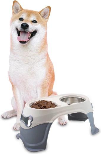 A megemelt, dupla kutyatál a ergonómiát, higiéniát és modern megjelenést ötvözi. A megemelt kialakításnak köszönhetően a kutyának nem kell túlzottan lehajtania a fejét evés közben, ami jobb emésztést és kényelmesebb etetést támogat. A két kivehető, rozsdamentes acél tál korrózióálló, és egyszerűen tisztítható, akár mosogatógépben is.