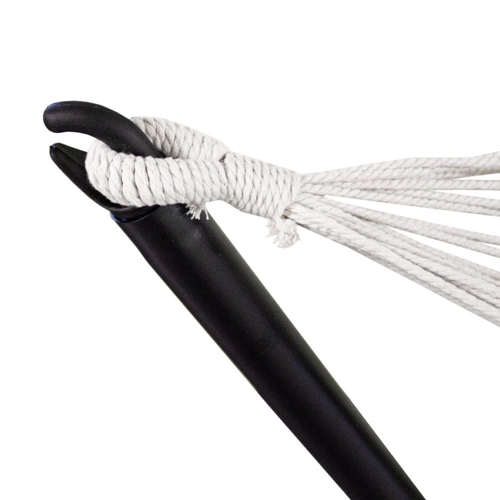 A masszív, porszórt fém váz biztonságosan a helyén tartja a hintahálót, így a kertben, a teraszon vagy akár az erkélyen is kényelmesen pihenhet.