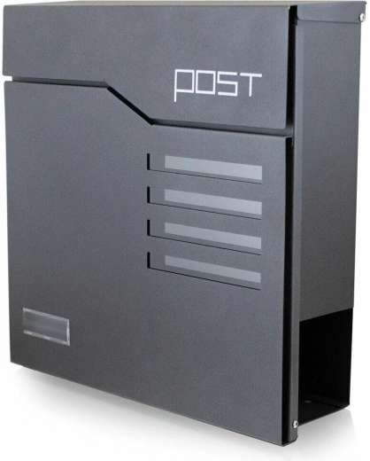 Stílusos és modern, grafitszürke postaláda dekoratív rozsdamentes acél fóliával, amely egyesíti az elegáns dizájnt, az időtálló tartósságot és a praktikus funkcionalitást. A széles bedobónyílásnak köszönhetően könnyen használható, a zár két kulccsal védi a küldeményeket, az integrált újságtartó pedig helyet biztosít a szórólapoknak és magazinoknak. A horganyzott acél porfestett felülettel hosszú élettartamot és időjárásállóságot biztosít.