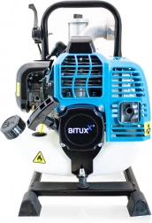 A BITUXX benzines motorszivattyú nagy teljesítményt nyújt kompakt házban. A 1,7 LE-s kétütemű motornak, 8 m szívómélységnek és akár 35 m emelőmagasságnak köszönhetően megbízhatóan kezeli az öntözést, az árkok, medencék és elárasztott terek víztelenítését. A masszív keret védi a motort és megkönnyíti a hordozást.
