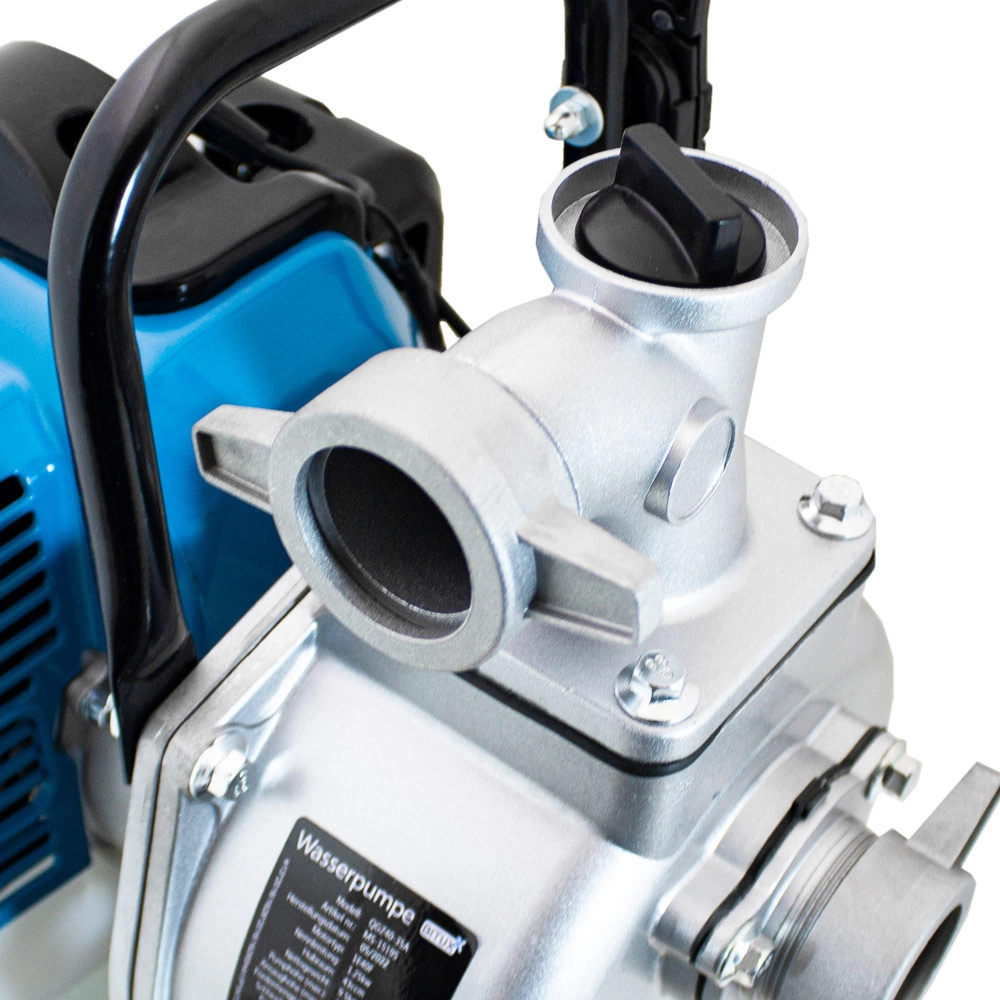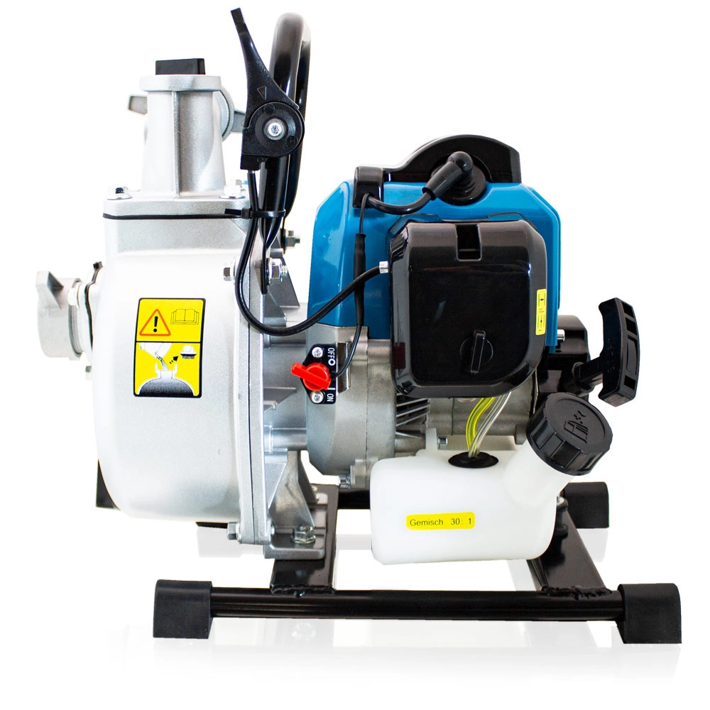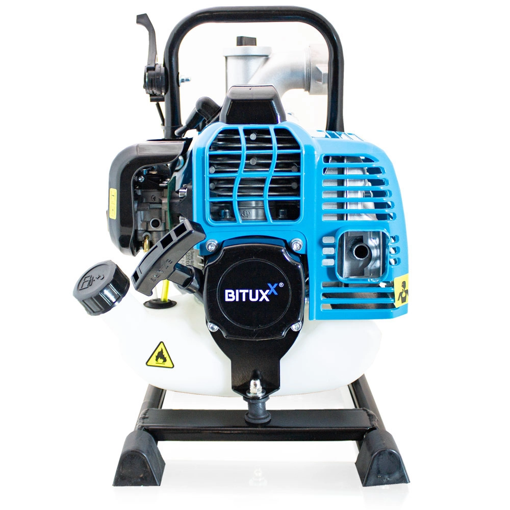 Kompakt BITUXX benzines szivattyú 1,7 LE a tiszta és szennyezett víz gyors szivattyúzásához, akár 6000 l/h térfogatárammal. Könnyű, mobil felépítés masszív kerettel, nagy teljesítményű kétütemű motorral és egyszerű berántós indítással – ideális kerthez, építkezéshez és mentési feladatokhoz.