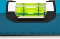 A jól leolvasható libelláknak és a mérőskálának köszönhetően könnyen ellenőrizhető a sík és a függőleges, miközben gyors méretvétel is elvégezhető. A védővégek óvják az eszközt az ütődésektől és növelik a stabilitást az anyagra helyezve.