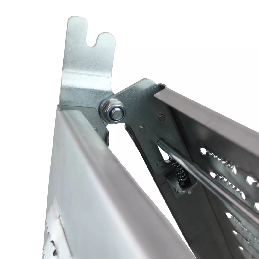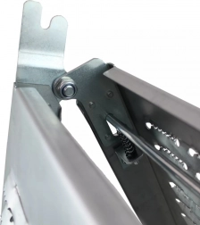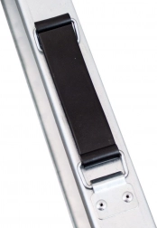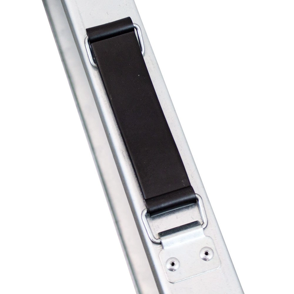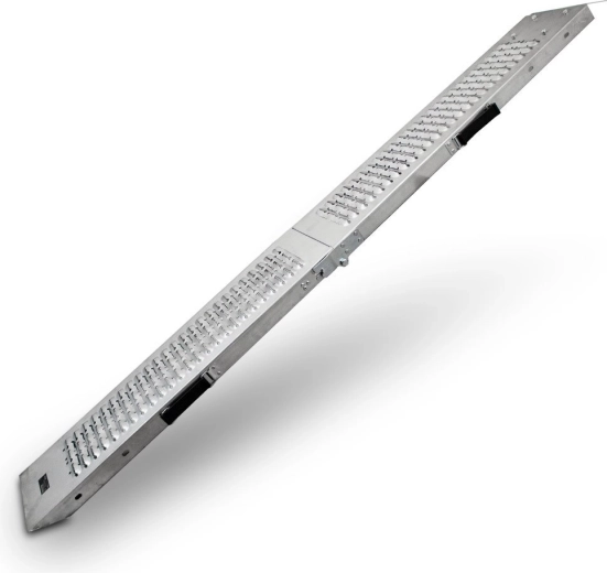 A masszív zsanérnak köszönhetően a rámpa gyorsan összehajtható 180 cm-ről 90 cm-re. A zár és az erős szegecsek biztonságos használatot és hosszú élettartamot biztosítanak.