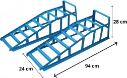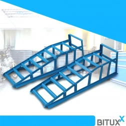 A praktikus, kompakt méretek megkönnyítik a tárolást és a hordozást. A készlet 2 db rámpát tartalmaz a kerekek egyidejű felhajtásához, felső kerékütközővel és erős oldalsó merevítésekkel. Kiváló választás otthoni garázsokba és autószervizekbe, valamint könnyű gépekhez vagy kerti gépekhez végzett munkákhoz.