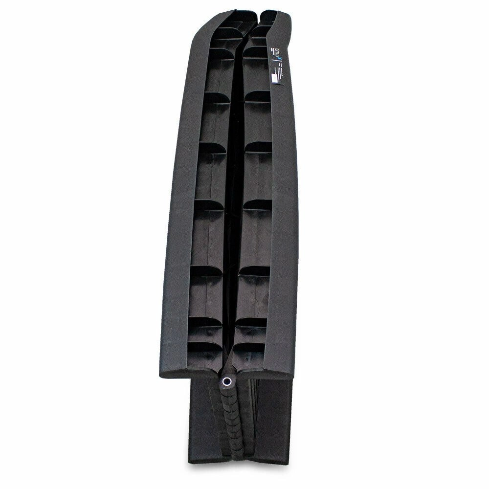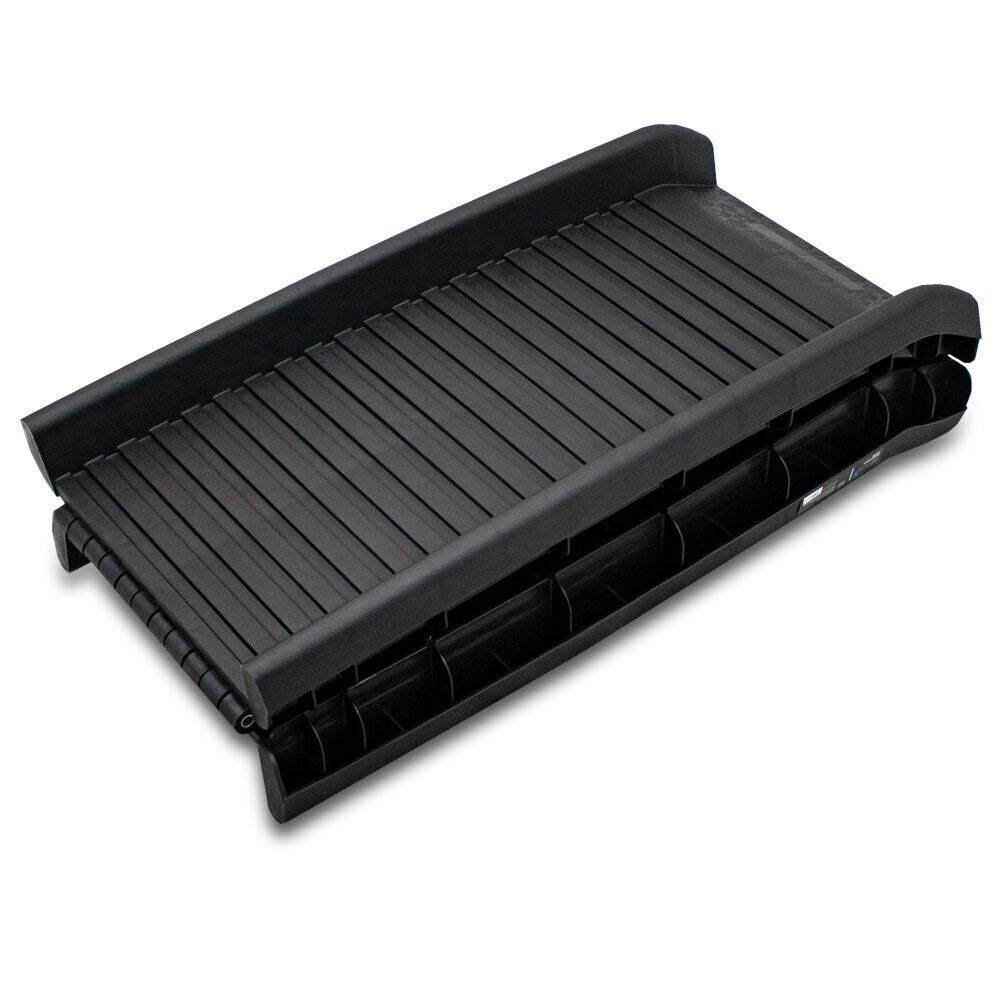 A rámpa mindössze 5 kg, könnyen hordozható, és a középső csuklónak köszönhetően gyorsan kompakt méretre hajtható.