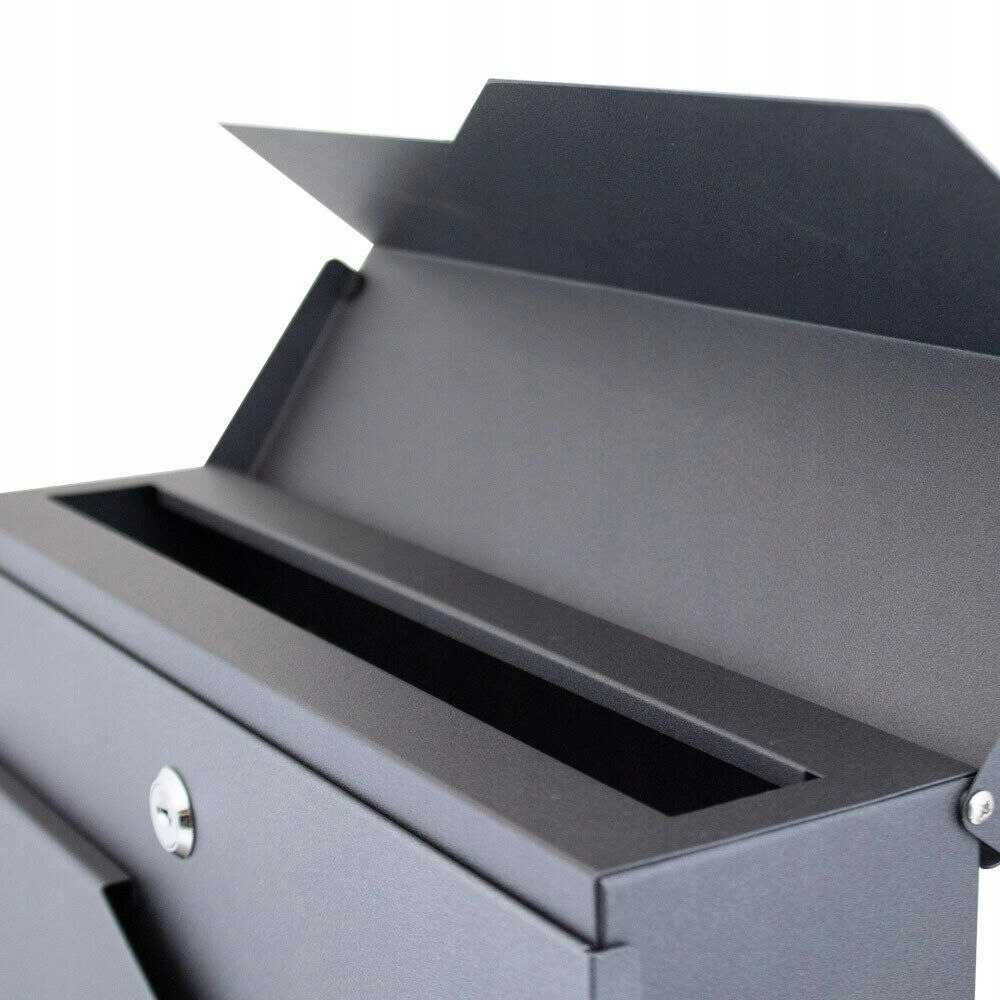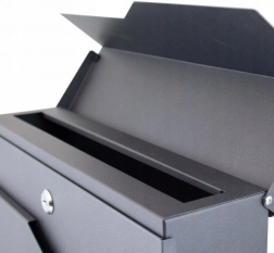 Az előlapi ajtó kulcsos zárral védi a küldeményeket, a bedobónyílás fedlapja megakadályozza az eső bejutását és növeli a tartalom biztonságát.
