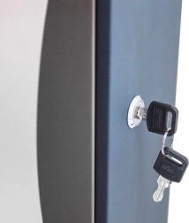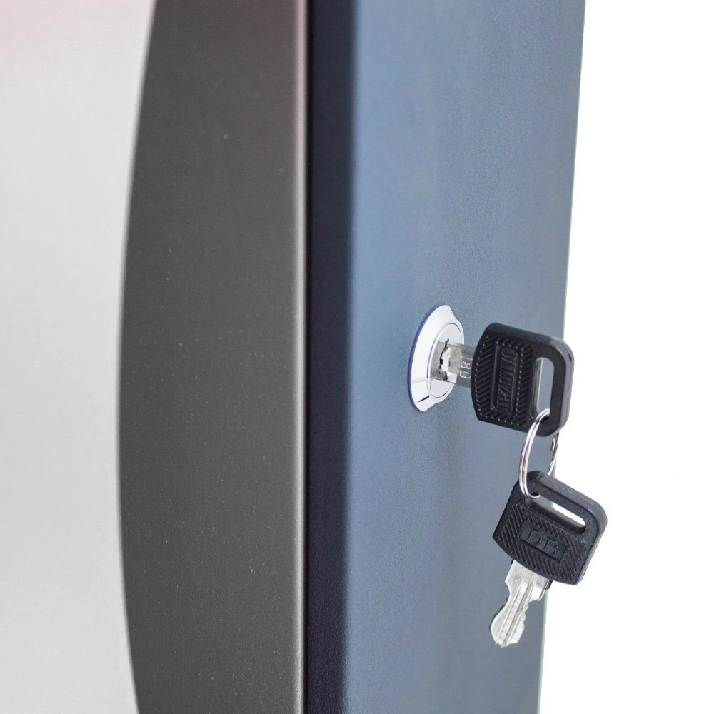 - Tartós és biztonságos: fém, porfestett felület, kulcsos zár.
