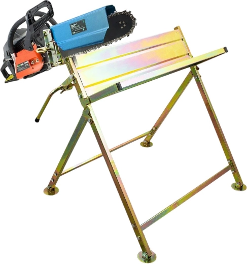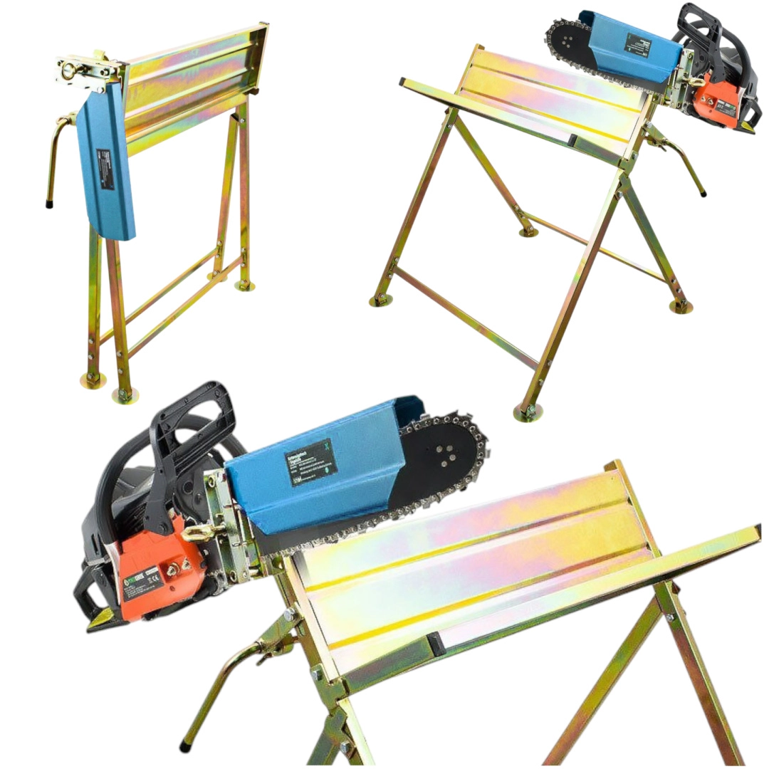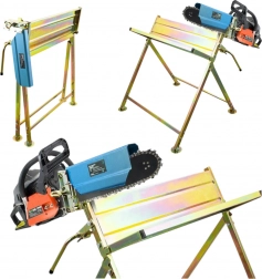 A 120 kg teherbírásnak és a 45 cm-es vezetősín-támogatásnak köszönhetően ideális kertbe, műhelybe vagy nyaralóba. Csúszásgátló talpak, csavaros kötések és a kifinomult lábgeometria biztosítják a stabilitást különböző felületeken. Munka után az állványt egyszerűen összecsukhatja kompakt méretre, és könnyen elteheti.