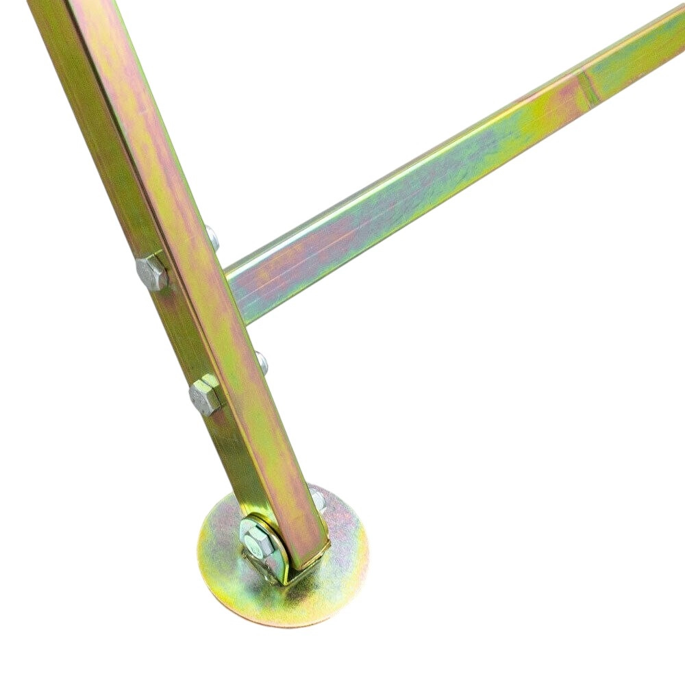 A horganyzott felület védi a korróziótól és a kopástól. Az állvány alkalmas intenzív kültéri és műhelyhasználatra is.
