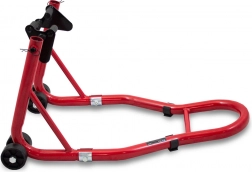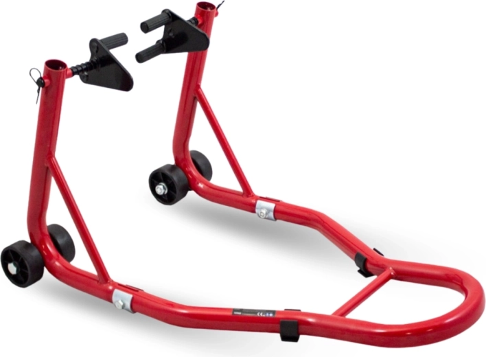 A praktikus első paddock állvány megbízható segítő a fékek karbantartásához, a kerék tisztításához és a motor hosszabb tárolásához. A 32 mm átmérőjű acélcsőből készült masszív váz magas merevséget és hosszú élettartamot nyújt, miközben a kerekek könnyed manőverezést tesznek lehetővé a garázsban.