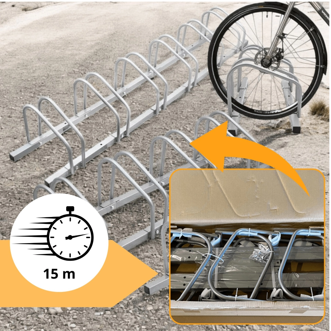 Stabil acél ívek és masszív kötések tartják a kerékpárokat egyenesen és megbízhatóan. A galvanizált kivitel növeli a korrózió- és kopásállóságot.