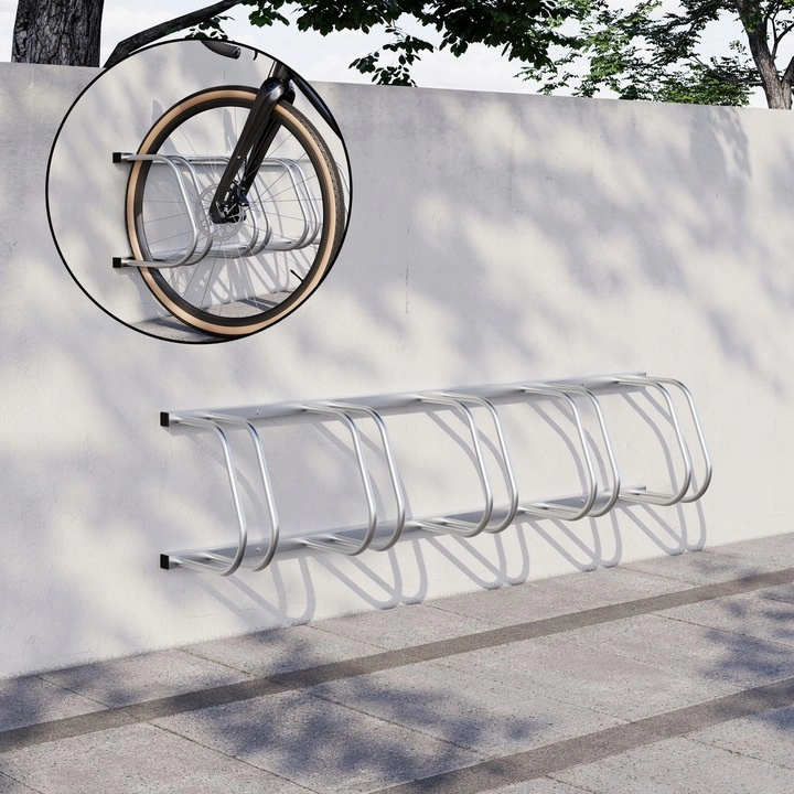 A 6 kerék számára készült kerékpártartó áttekinthető és biztonságos tárolást kínál otthon, munkahelyen és nyilvános helyeken. A masszív acélszerkezet porszórt felülettel és IP44 védelemmel ellenáll a nedvességnek és az időjárásnak. Az előfúrt furatoknak köszönhetően a telepítés gyors és egyszerű, padlóra és falra egyaránt.