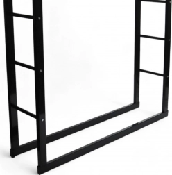 A teljesen hegesztett keretnek köszönhetően az állvány nem billeg, és biztonságosan elbír nagyobb mennyiségű rönköt is. A könnyű, szabadon álló kialakítás egyszerű áthelyezést tesz lehetővé – a kandallótól egészen a télikertig.