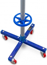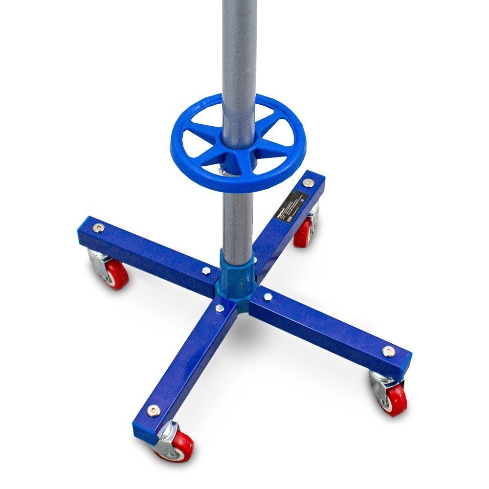 A kereszt alakú alap négy forgó kerékkel zökkenőmentes mozgatást tesz lehetővé még szűk helyeken is. Ideális garázsokba és műhelyekbe, ahol minden centiméter számít.