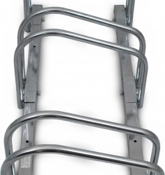 A pozíciók közötti 30 cm-es osztás minimálisra csökkenti az érintkezést és a karcolásokat, így a kerékpárok nem érnek egymáshoz. A 35–60 mm-es gumikompatibilitás miatt ideális városi, trekking és hegyikerékpárokhoz.