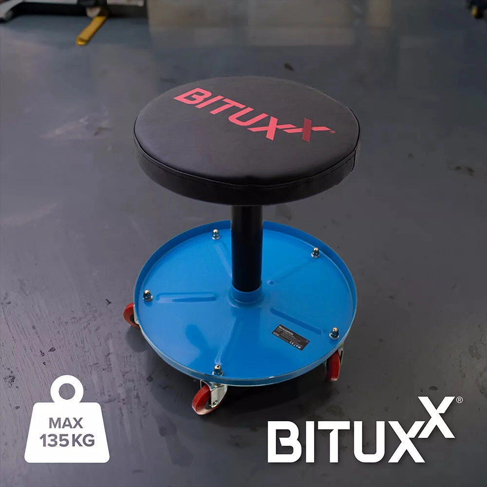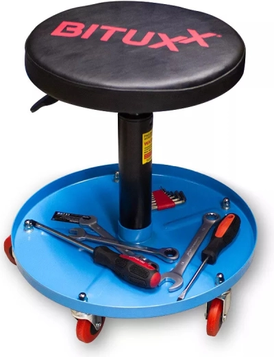 Élvezze a kényelmet és a mobilitást a mindennapi szervizelés vagy otthoni barkácsolás során. A pneumatikus 40–50 cm-es magasságállítással a zsámolyt könnyedén igazíthatja különböző munkapozíciókhoz, míg a 360°-ban forgó ülés zökkenőmentes elérést biztosít felesleges felállás nélkül.