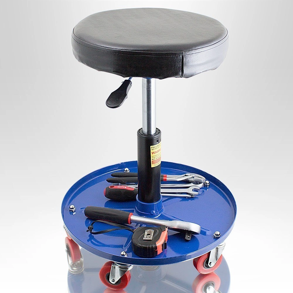 Praktikus forgó műhelyzsámoly garázsba, szervizbe és műhelybe. Kínál pneumatikus magasságállítást 40–50 cm, 360°-ban forgatható ülőfelületet, integrált szerszámtárolót és akár 135 kg teherbírást – a mindennapi munka kényelméért és hatékonyságáért.