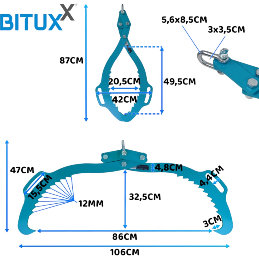 A masszív acél és a robusztus csapok tartós terhelést bírnak deformáció nélkül. A 760 mm-es széles pofák a vastag rönköket is lefogják, míg a biztos fogás minimalizálja a csúszást és a baleset kockázatát. Kiváló megoldás erdészeti munkákhoz, fűrésztelepekhez, kommunális szolgáltatóknak és gazdaságoknak.