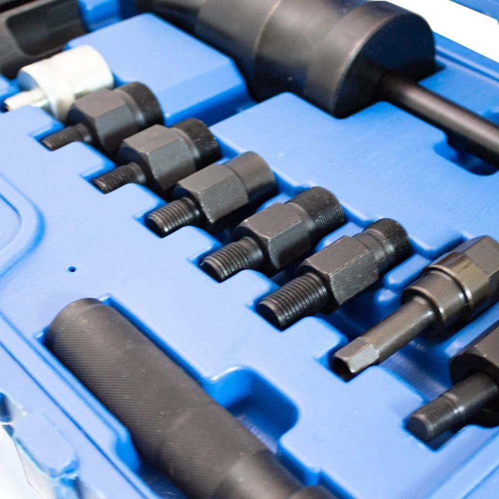 Professzionális univerzális befecskendező-kinyomó a gyors és biztonságos szétszereléshez CDI, CRDI, CR és HDI rendszerekkel szerelt járművekben. A gömbcsuklós kialakításnak köszönhetően megbízhatóan működik szűk helyeken is. Tartalmaz univerzális adaptereket, amelyek kompatibilisek a legelterjedtebb BOSCH, SIEMENS, DELPHI, DENSO rendszerekkel, valamint strapabíró felépítést a hosszú élettartamért.