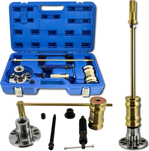 Professzionális hidraulikus agy- és csapágylehúzó akár 10 tonna nyomóerővel a gyors és biztonságos szétszereléshez. Az univerzális osztókör tárcsa 4 és 5 furathoz (98–125 mm), a 19 mm-es hatszöggel ellátott kézi orsó és a masszív, kofferben történő tárolás révén ez a készlet ideális autószervizeknek és otthoni műhelyeknek. Időt spórol, növeli a hatékonyságot, és megbízható teljesítményt nyújt még berohadt kötések esetén is.