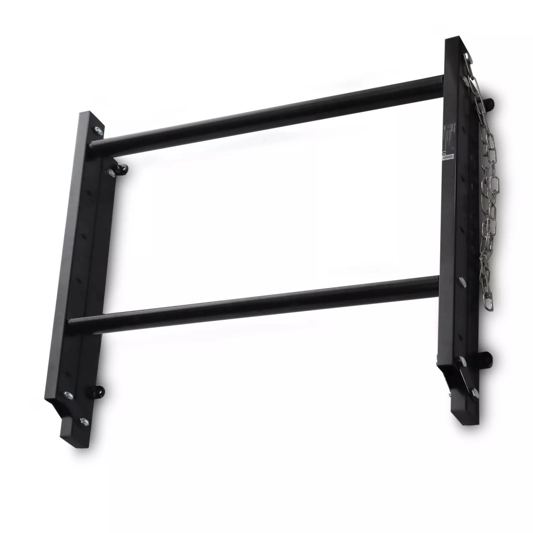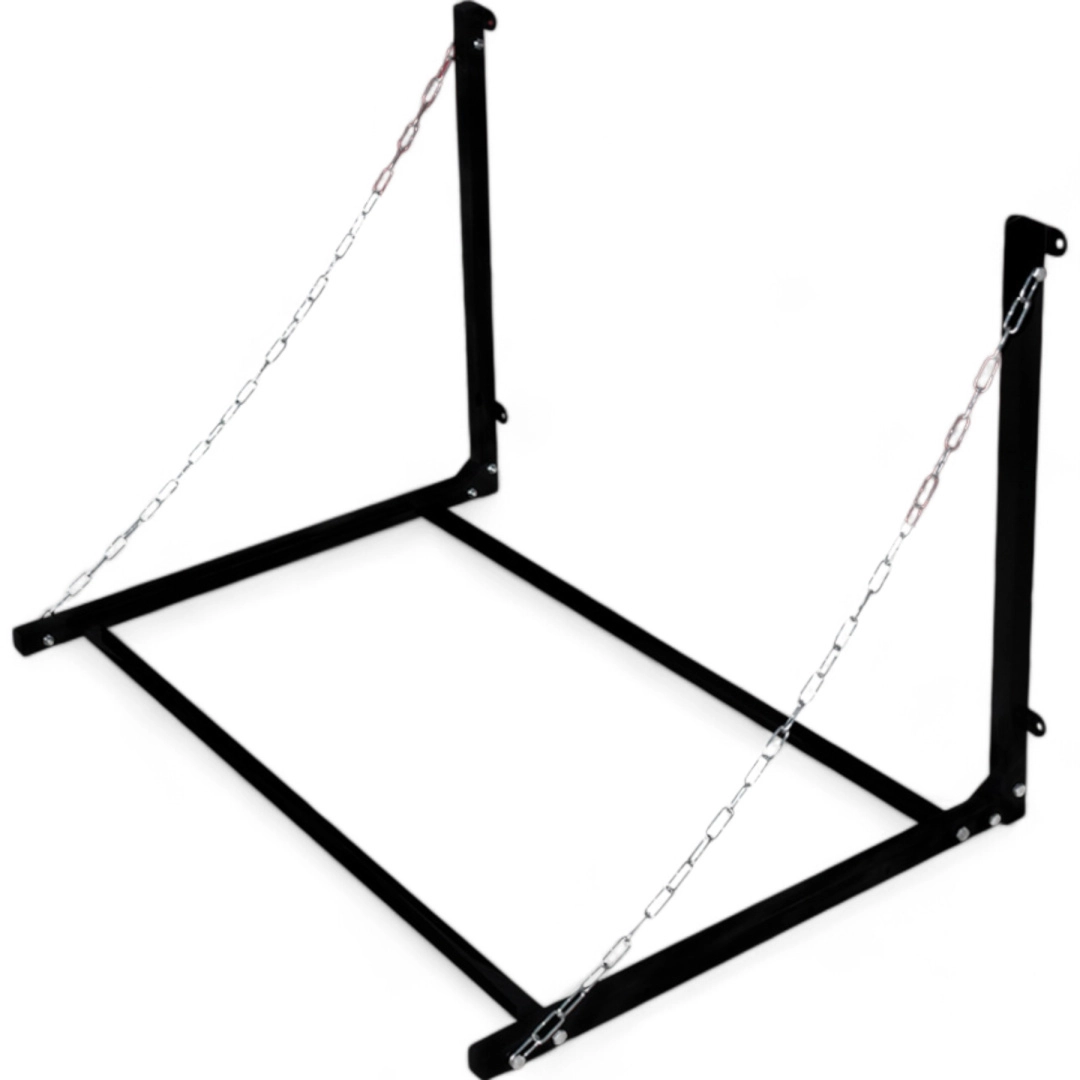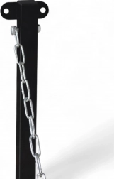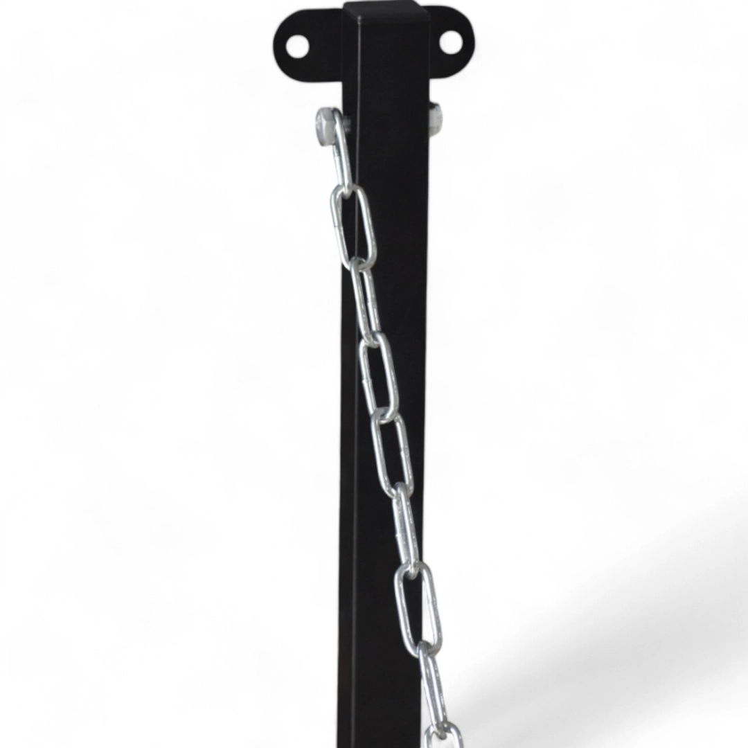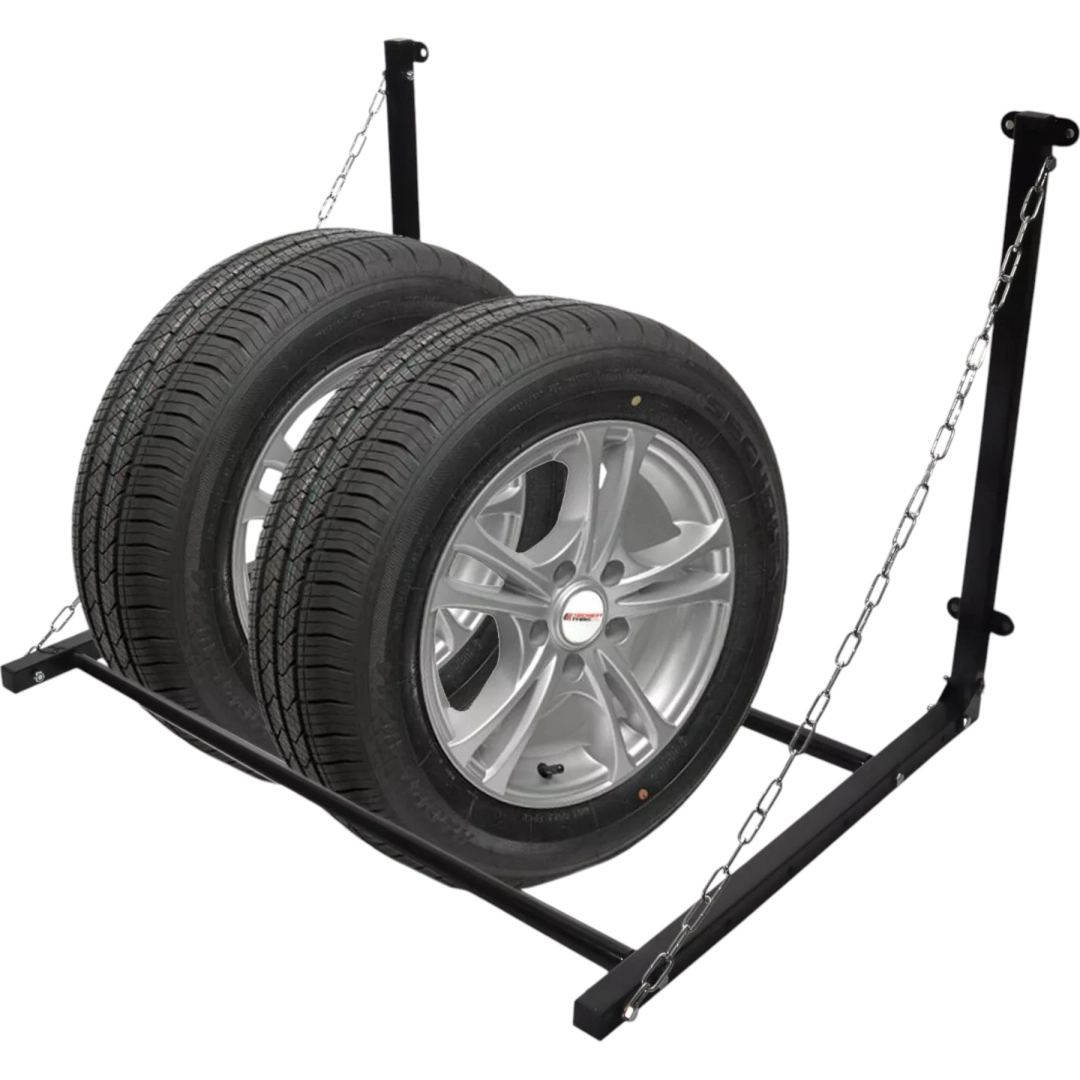 Masszív acélszerkezet láncos rögzítéssel, amely biztonságosan elbír akár négy kereket vagy abroncsot.