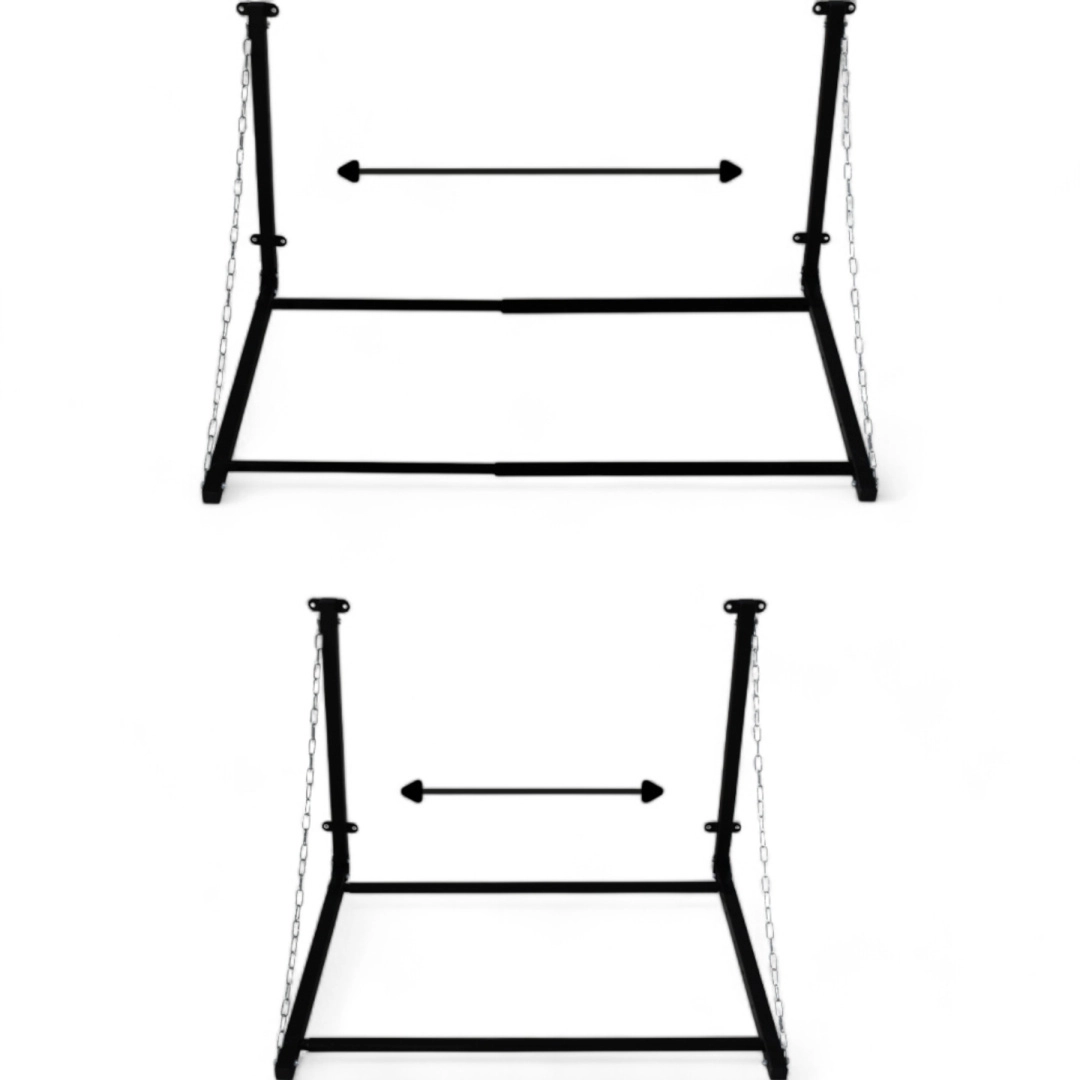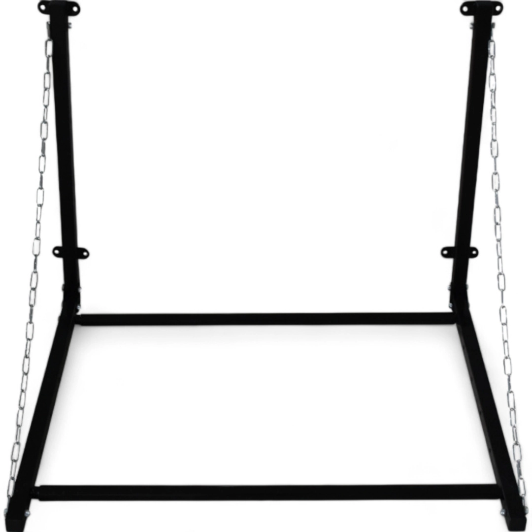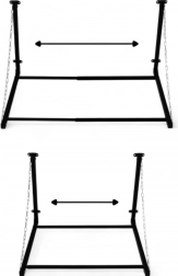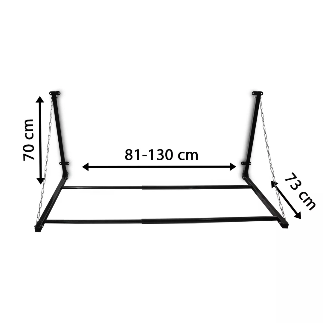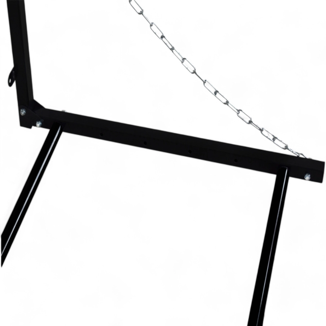 Masszív acélszerkezet láncos rögzítéssel, amely biztonságosan elbír akár négy kereket vagy abroncsot.