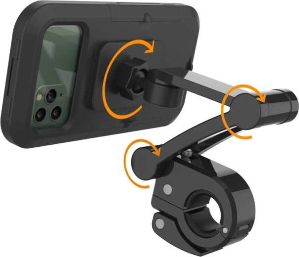 Élvezze a navigációt, az útvonalrögzítést és a folyamatos kapcsolatot – eső és rázkódás nélkülözte aggodalommal. Ez a vízálló okostelefon-tartó mindennapos városi és terephasználatra készült, és rendkívül erős mágnesének köszönhetően szilárdan a helyén tartja a telefont. A 360°-ban forgatható fejnek hála könnyedén beállíthatja az ideális nézési szöget álló és fekvő módban is.