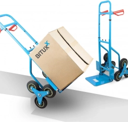 Ez a lépcsőjáró rudli hatékony tehermozgatásra készült otthon, raktárban és műhelyben. A háromkerekű csillagoknak köszönhetően simán halad a lépcsőkön és egyenetlenségeken, míg az acél váz stabilitást és hosszú élettartamot biztosít. A kompakt rakodóplatform 25 × 31 cm megbízhatóan alátámasztja a dobozokat, ládákat és kisebb bútorokat.