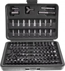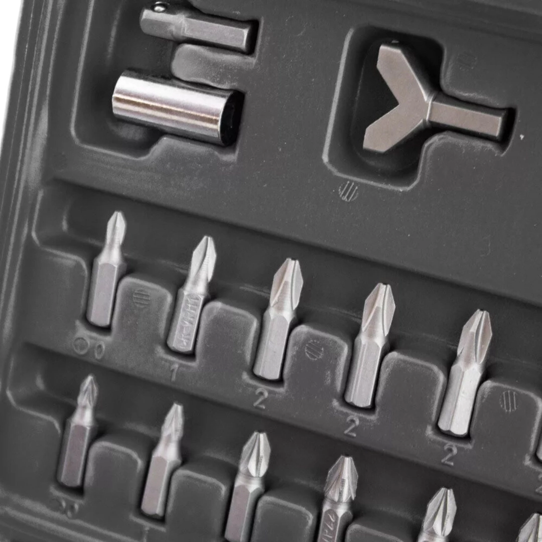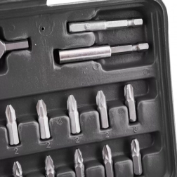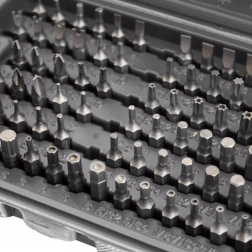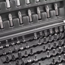 Ez az átfogó készlet széles bitválasztékot kínál – lapos, kereszt PH és PZ, TORX és furatos TORX, metrikus és colos imbusz, valamint biztonsági bitek, mint a tri‑wing, spanner, Robertson (SQ), XZN és továbbiak. A strapabíró acél hosszú élettartamot és megbízhatóságot biztosít szereléshez, szervizhez és javításhoz.