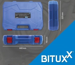A praktikus, erős műanyag koffer rendezetten tartja az eszközöket és megkönnyíti a szállítást. A kiváló minőségű acél kivitel hosszú élettartamot és megbízhatóságot garantál még megterhelő használat mellett is.