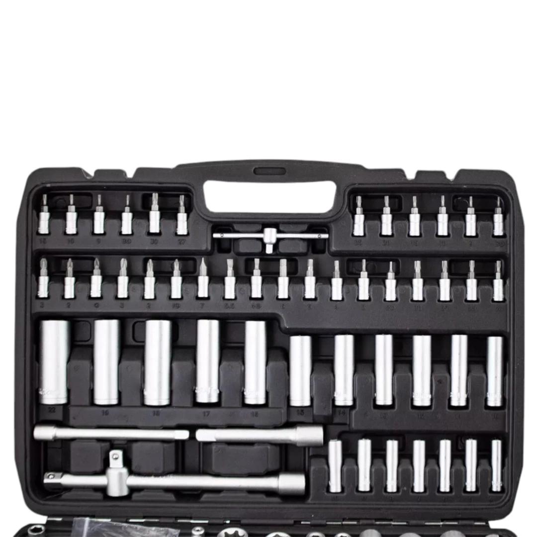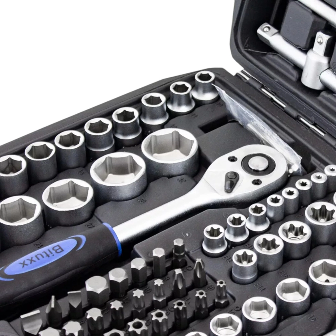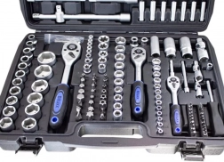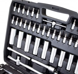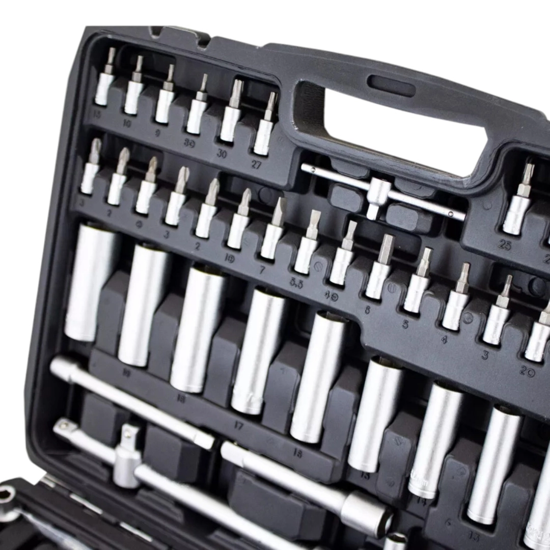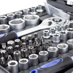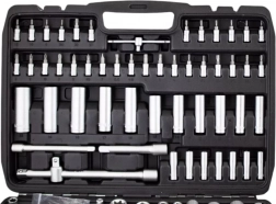 Ez az átfogó készlet egyesíti az 1/4”, 3/8” és 1/2” dugókulcsok széles választékát, a racsnikat, hosszabbítókat, adaptereket és kulcsokat a kötőelemek gyors és pontos lazításához és meghúzásához. A króm–vanádium acél (CrV) nagy tartósságot és hosszú élettartamot biztosít, míg a masszív ABS bőrönd mindent áttekinthetően és mindig kéznél tart.