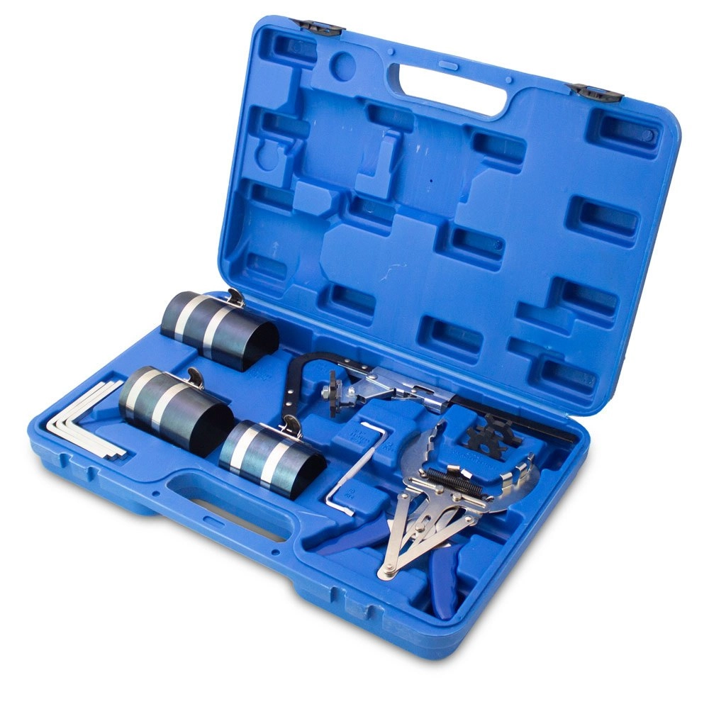 A készlettel könnyedén eltávolíthatja a lerakódásokat a hornyokból, felhelyezheti az új gyűrűket, és a szalagok segítségével biztonságosan összehúzhatja azokat a dugattyú hengerbe történő bevezetéséhez. A minőségi anyagoknak és a precíz meghúzó mechanizmusnak köszönhetően megbízható eredményt ér el még igényes körülmények között is.
